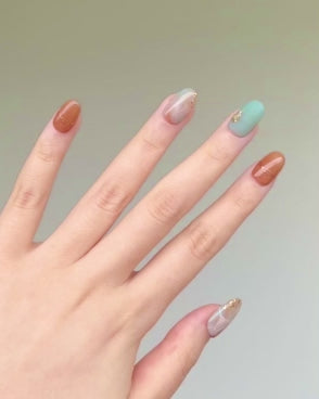 ・1点1点ネイリストがハンドメイドでお作りしておりますので、商品画像と全く同じとは限りません。また、写真の光の加減やお持ちのデバイスの液晶の色味で多少色や見え方が変わる場合がございます。注意しながら作成しておりますが、稀にホコリや細かい傷などが入ってしまう場合がございます。予めご了承ください。
