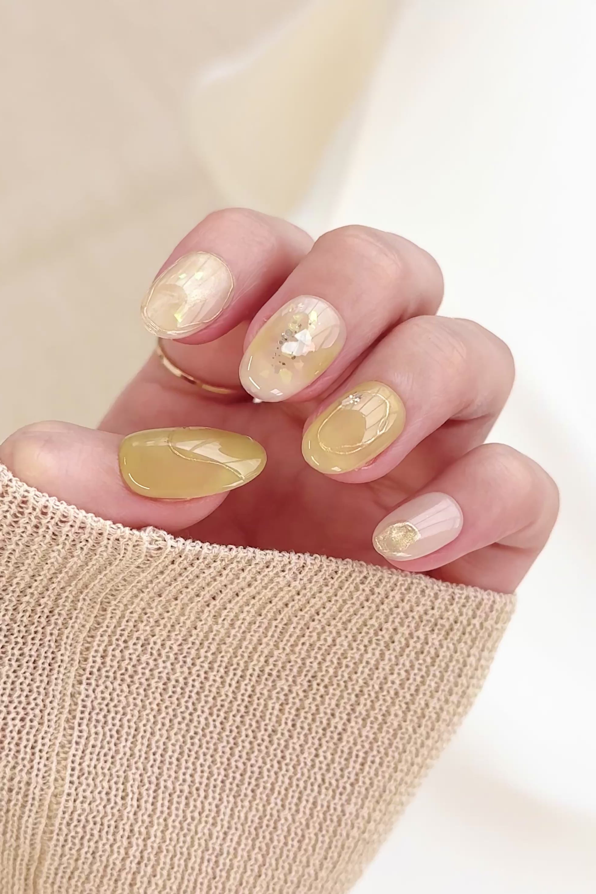 ・1点1点ネイリストがハンドメイドでお作りしておりますので、商品画像と全く同じとは限りません。また、写真の光の加減やお持ちのデバイスの液晶の色味で多少色や見え方が変わる場合がございます。注意しながら作成しておりますが、稀にホコリや細かい傷などが入ってしまう場合がございます。予めご了承ください。