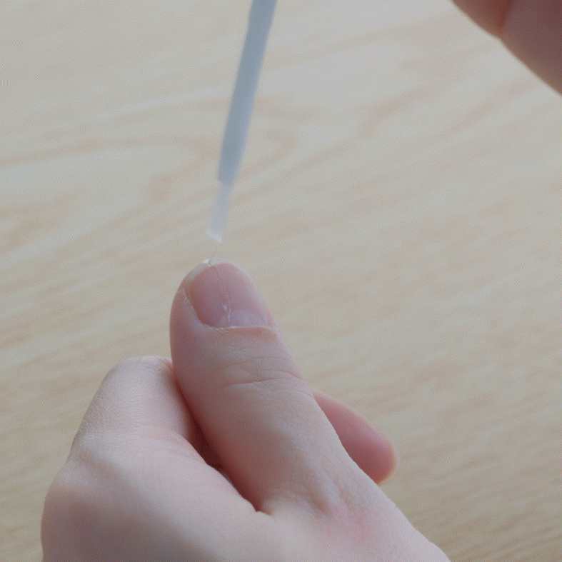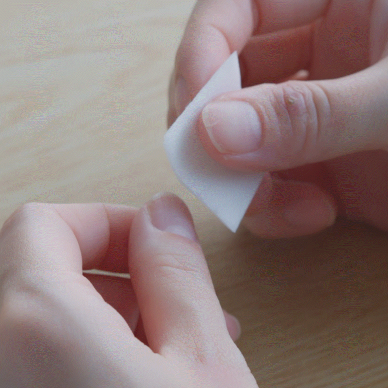 アルコールパッドで自爪とチップの油分を拭き取る。