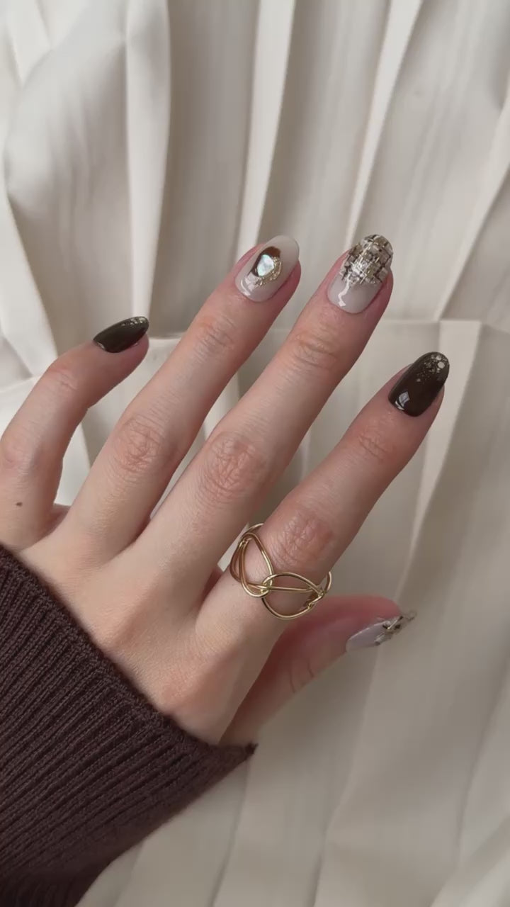 ・1点1点ネイリストがハンドメイドでお作りしておりますので、商品画像と全く同じとは限りません。また、写真の光の加減やお持ちのデバイスの液晶の色味で多少色や見え方が変わる場合がございます。注意しながら作成しておりますが、稀にホコリや細かい傷などが入ってしまう場合がございます。予めご了承ください。