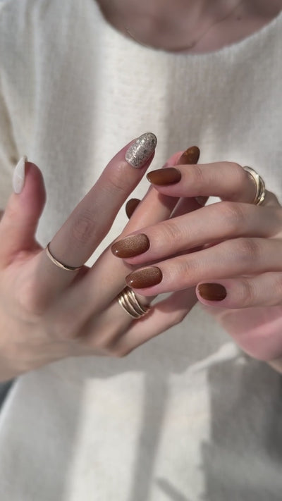 温かみのある色合いと上品な輝きが、落ち着いた大人の指先を引き立てます。