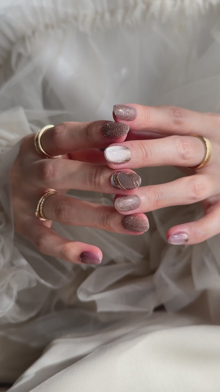 ・1点1点ネイリストがハンドメイドでお作りしておりますので、商品画像と全く同じとは限りません。また、写真の光の加減やお持ちのデバイスの液晶の色味で多少色や見え方が変わる場合がございます。注意しながら作成しておりますが、稀にホコリや細かい傷などが入ってしまう場合がございます。予めご了承ください。