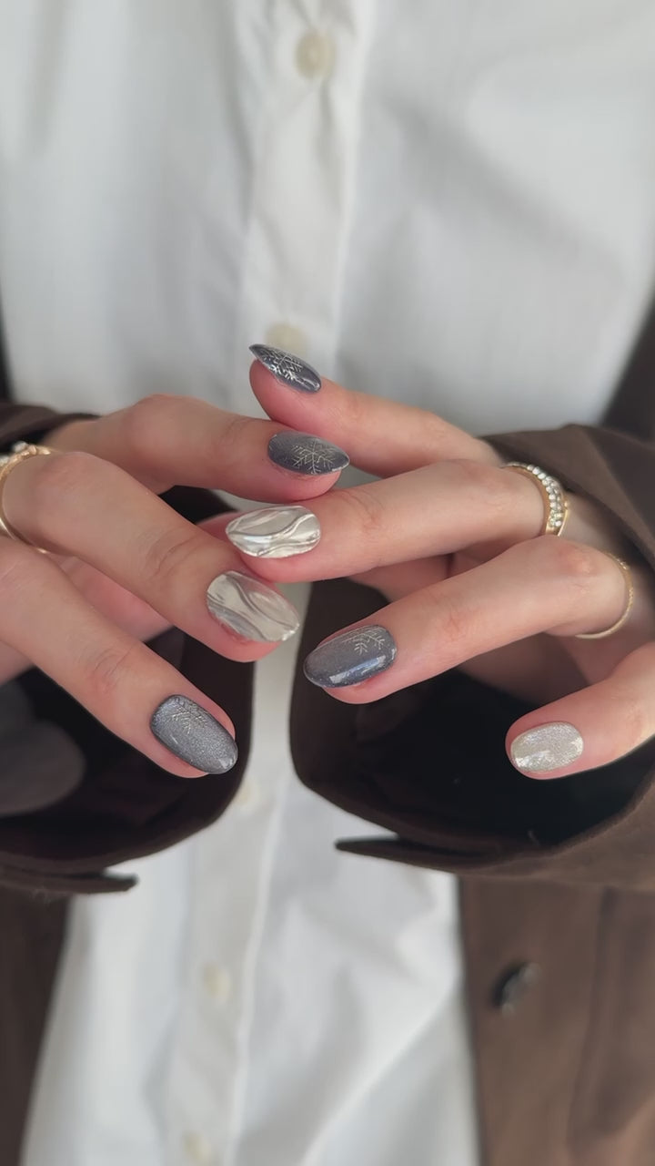 透けるような深いネイビーに、雪の結晶とシルバーを合わせた