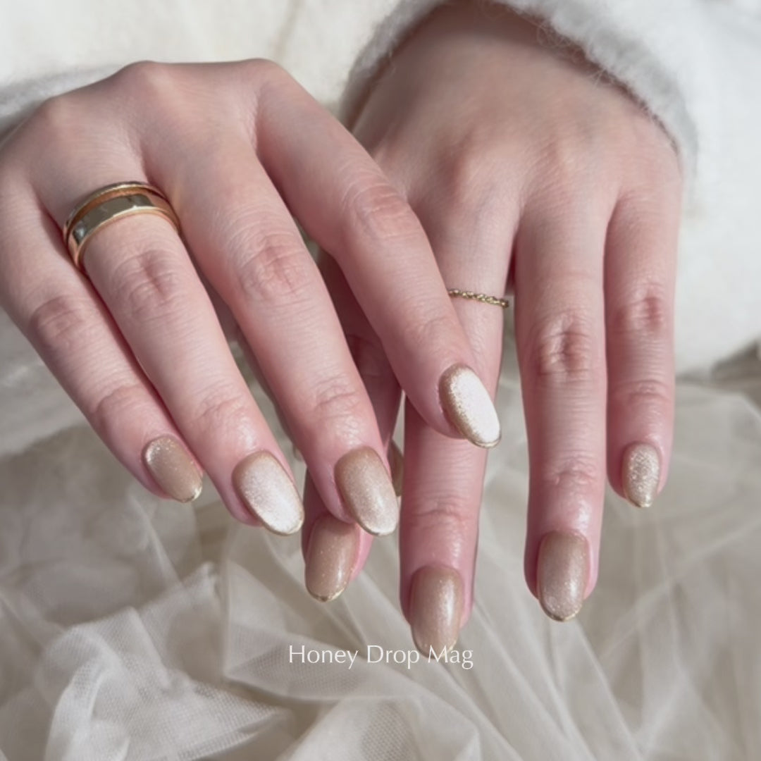 美しい蜂蜜色のベースに、ゴールドの微粒子ちゅるんマグネットを配しました。
